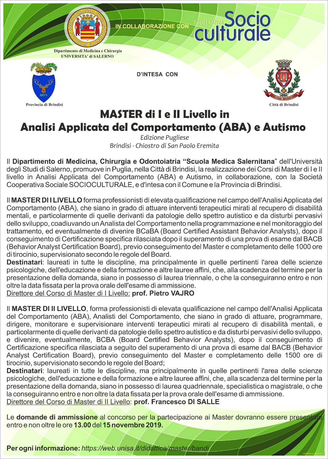 Prorogati termini per iscrizione: Master I e II Livello in analisi applicata del comportamento (ABA) e Autismo al 5 Dicembre 2019 ore 13.00