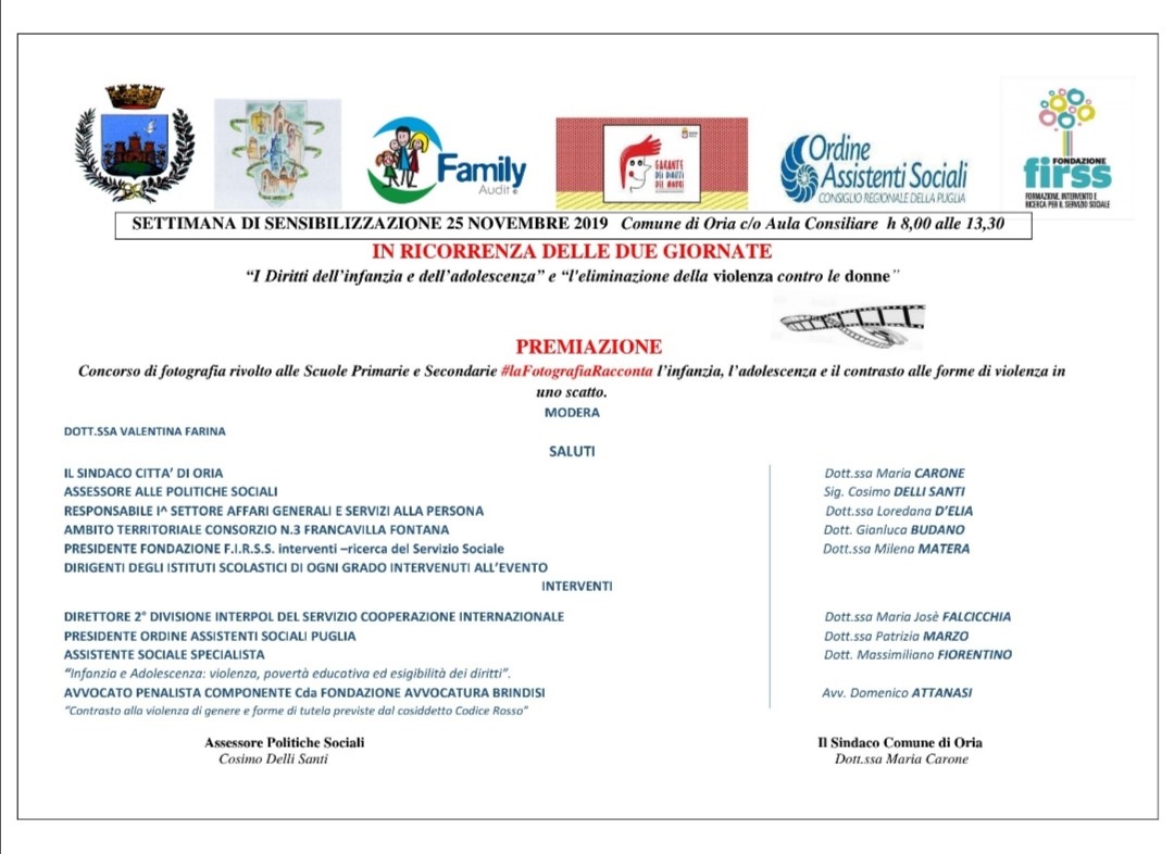 Settimana di sensibilizzazione 25 Novembre 2019 Comune di Oria