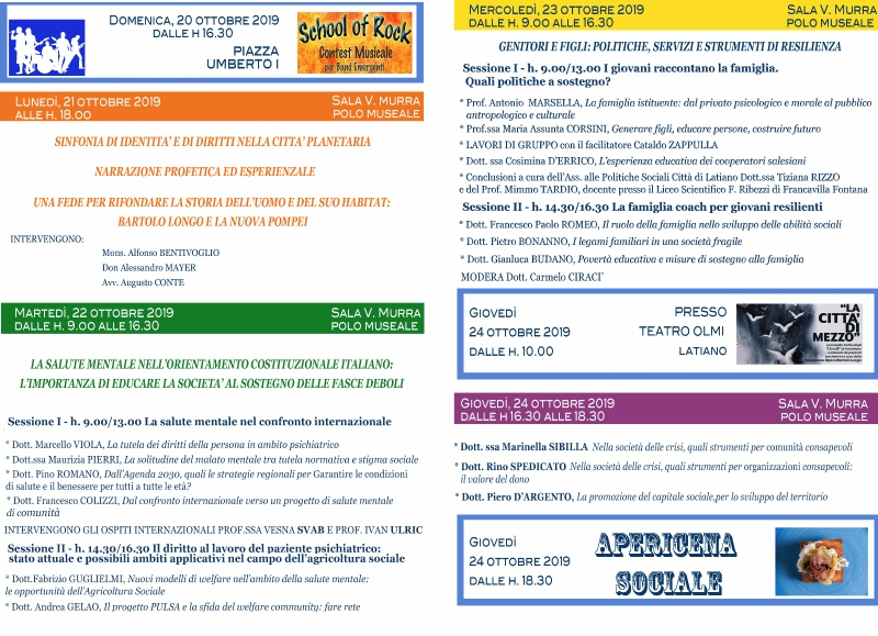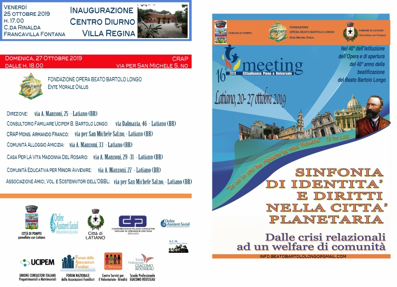 XVI MEETING DELLA CITTADINANZA PIENA ED UNIVERSALE - Latiano 20-27 Ottobre 2019